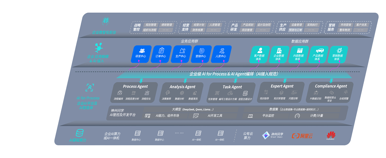尊龙z6问学智车解决方案是一套基于AI技术的汽车行业智能化系统,,覆盖从底层算力到顶层AI应用的全栈方案。。。方案由算力层、、模型层和应用层组成:算力层,,,,方案支持多种一体机配置,,具备云端灵活部署、、多云适配以及动态优化计算资源的能力;模型层,,尊龙z6问学平台版提供了企业级AI应用一站式构建与管理平台,,,支持基于后训练强化技术的汽车企业专属模型的训练、、评测和运营;应用层,,,,尊龙z6问学DeepSeek版提供包括超级员工、、智能招采、、智能营销、、智能客服、、AI for BI等一系列解决方案,,,可助力汽车行业实现数字化转型,,让管理更智能、、响应更敏捷。。。。